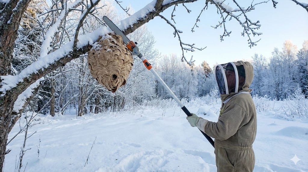 寒冷地では気温の低下が急激なため、10月末から11月にはすでにほとんどの蜂が活動を終えています。雪深くなる前に撤去するのが理想ですが、雪の中に埋まってしまった巣は、無理に掘り起こさず春先の雪解けを待ってから対処する方が安全です。ただし、暖かくなる4月末ごろからは再び活動が始まるため、3月から4月の雪解け直後が「活動再開前のラストチャンス」となります。